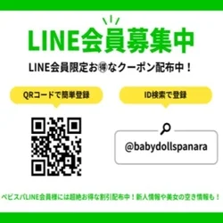 2025.12.15 20:00 【近日解禁】LINE会員様限定・特別クーポン予告✨ いつもベビードールスパ奈良店をご利用いただきありがとうございます。 この度、近日中に LINE会員様限定で特別クーポンを配信させていただきます✨ 今回は リピーター様・新規様どちらもご利用いただける内容で、 より多くのお客様に楽しんでいただけるようご準備しております。 詳細はまだお伝えできませんが、 必ずご満足いただける特典をご用意しております。 ぜひLINEのご登録を済ませ、配信をお待ちください💗 ▼LINEお友だち登録はこちら ID:@babydollspanara 配信を確実に受け取っていただくため、 LINEをご登録いただいた後に 「クーポン希望」とメッセージをお送りください💌 スムーズにご案内させていただきます。✨🌸いつもベビードールスパ奈良店をご愛顧いただき、誠にありがとうございます🌸✨ 日頃ご利用いただいているお客様へ、 感謝の気持ちを込めた特別なお知らせをお届けいたします。 ただいま当店では、 ✨《LINE会員様限定》スペシャルクーポン✨ を近日中に配信する準備を進めております。 今回のクーポンは、 リピーター様・新規様ともにご利用いただける特別仕様。 より多くのお客様にお得&贅沢な時間を楽しんでいただけるよう、 “いつもより一歩ランク上の内容”を企画しております。 現時点では詳細を公開できませんが… ご期待いただいて間違いない内容です。 「これは嬉しい!」と思っていただける特典を必ずお届けいたします💖 ─────────────── 📣 クーポン受け取り準備のお願い ─────────────── 確実にクーポンをお受け取りいただくため、 以下の手順をお願いいたします。 ① LINEの友だち登録をする ② 登録後にメッセージで 「クーポン希望」 とお送りください💌 ※お送りいただくことで、こちらから特典配信をスムーズにご案内できます。 ▼LINEお友だち登録はこちら ID: @babydollspanara ─────────────── これからも、お客様一人ひとりに “特別な癒し” をお届けできるよう努めてまいります。 今後の配信を楽しみにお待ちいただければ幸いです✨ 引き続きベビードールスパ奈良店をよろしくお願いいたします💗